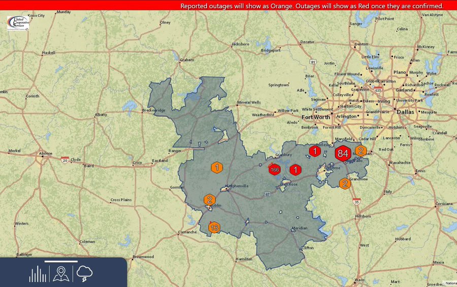 Power Outages confirmed in red. Orange are reports ones Credit – @Puckbunny13