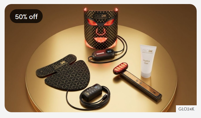 GLO24K brings advanced skincare technology into at-home routines with LED light therapy devices. These tools use multiple light wavelengths to target different skin concerns, including signs of aging and uneven tone. The masks and handheld devices also include features like adjustable intensity, timers, and additional technologies such as microcurrent and gentle heat for enhanced results.