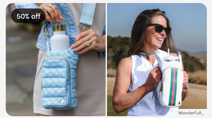 Stylish meets practical with WanderFull HydroBags, designed to carry both your water bottle and everyday essentials in one compact solution. These bags feature water-resistant compartments for phones, keys, wallets, and more, along with built-in card slots for added convenience. Available in classic designs, vegan leather options with interchangeable straps, and clear styles perfect for summer outings. The Mommy & Me bundle offers matching full-size and mini bags for all-day hydration.