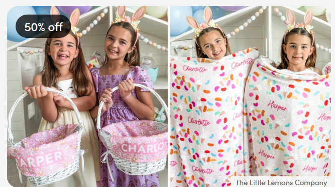 Create meaningful keepsakes this Easter with personalized items designed for comfort and everyday use. The brand’s ultra-soft blankets are a standout, perfect for lounging, bedtime, or travel. Easter-themed personalization adds a special touch, while matching basket liners and tees make celebrations more memorable.