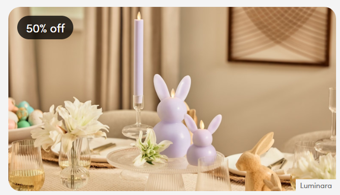 Known for vintage-inspired designs, this collection includes foaming hand soaps, candles, melamine plates, and aprons. The soaps deliver a rich lather with signature fragrances, while refill pouches offer an eco-friendly option. Decorative tableware and accessories bring color and charm to Easter gatherings. Shipping starts at $4.99.