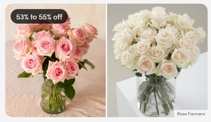 Rose Farmers brings 24 long-stem rose bouquets in white, pink, cream and earth-toned arrangements. Each bouquet is handpicked and designed for gifting, with farmers also selecting surprise two-color arrangements.