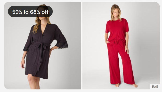 Bali’s breathable sleepwear collection focuses on soft, cooling and lightweight fabrics designed for comfort from bedtime to morning. The range includes nightgowns, chemises, robes, sleepshirts, T-shirts and pants.