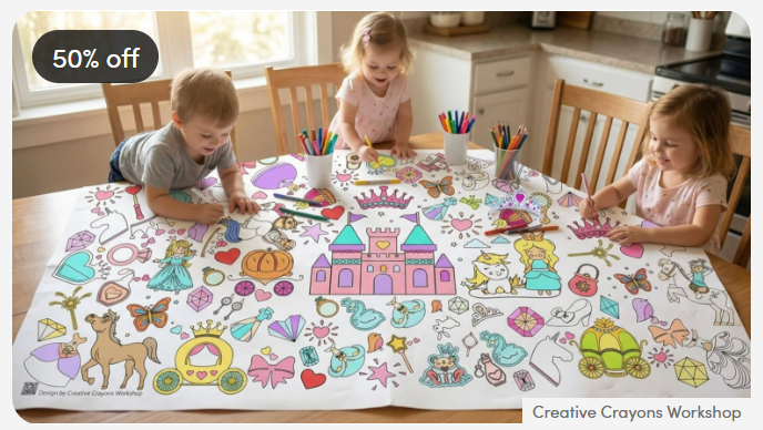 Creative Crayons Workshop introduces an interactive way to celebrate Easter gatherings. Their coloring tablecloths allow families to create artwork together during meals, which can later be displayed as festive décor.