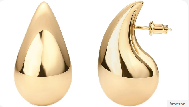 Made with 14K gold plating and sterling silver posts, these teardrop hoop earrings offer a bold but wearable statement piece that works for both casual and dressier occasions.