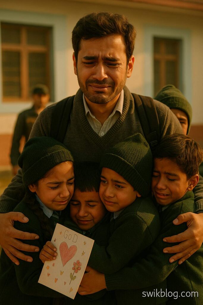 One night, a sudden snowstorm covered the entire town in silence. The electricity went out, the temperature dropped brutally, and the school staff quarters felt colder than anything Raghav had ever imagined. Wrapped in three blankets, he started coughing uncontrollably. The next morning, before he could even step outside, he heard soft knocks — four students stood there with their parents, carrying thermos flasks of hot kahwa, kangris to keep him warm, and a thick pheran to protect him from the cold. One mother gently rubbed his forehead and said, “Sir, you are alone here… but not alone for us.”